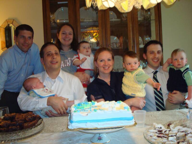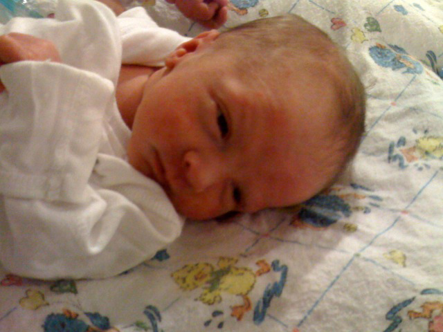 Mommy, Grandma and Pop-E came to visit me so Mommy could feed me, Grandma could hold me and Pop-E could take some pictures. Nobody knew it but the "Mohel" was on his way to do some cutting.