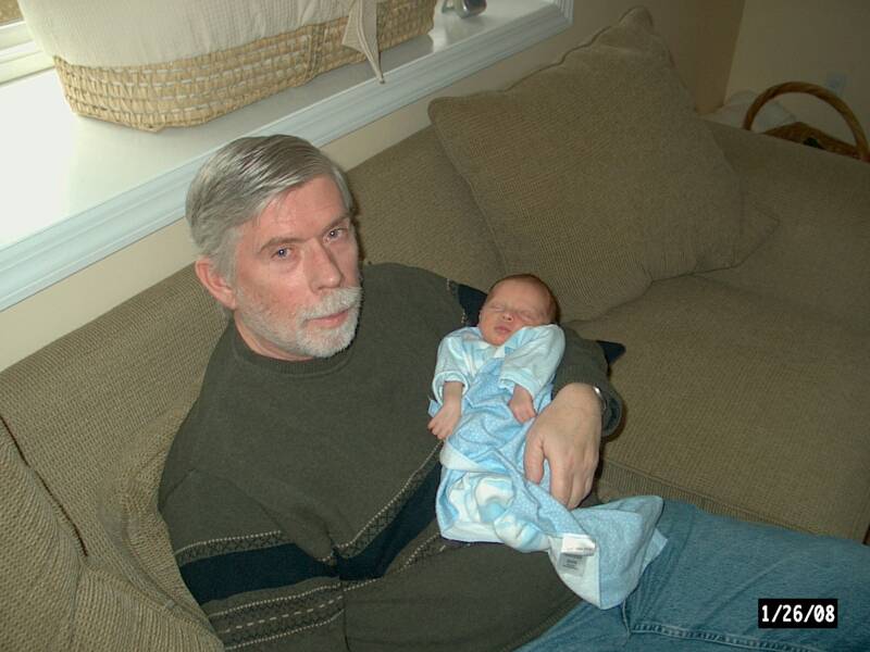 Grandma, Pop-E and Uncle Scott came over to see me (and of course Christopher and Daniel). It was the 1st time Pop-E held me and of course he needed to have a picture taken right away.