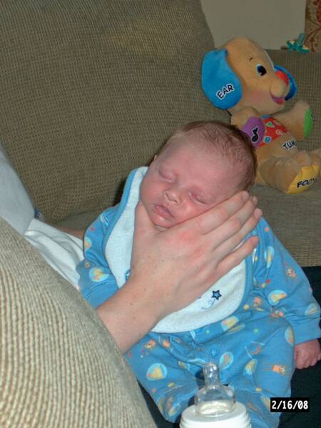 Big Day today - I am one Month and 1 Day old and Aunt Jess, Uncle Greg and Jake are down from Woburn. They came down last night and are staying at Grandma and Pop-E's house since they have not seem Jake since Christmas.