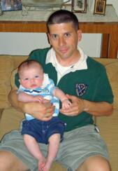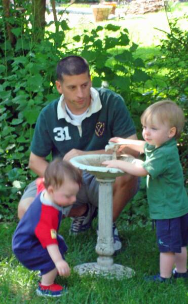 We went to Grandma and Pop-E's for a BBQ and Uncle Scott was teaching the "BROs" how to play in the bird bath. I was to busy smiling. However I got my picture taken with Uncle Scott.
