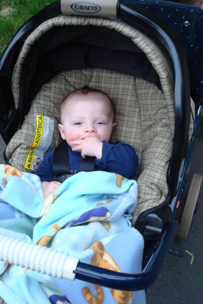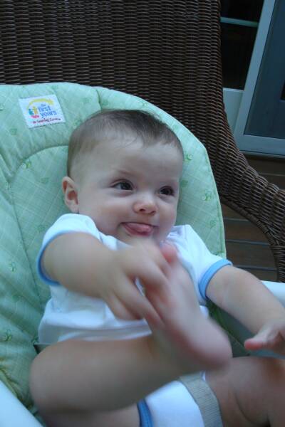 Of course I missed out on the walk to the park because I was napping. However, I woke up as usually with a big smile and practiced my "Raspberries" and played with my toes.