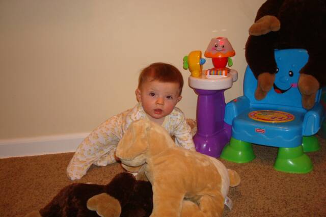 The crib has a great mobile and I like the music. They also have a cow in the crib and him and I had a contest to see who blinked 1st. I guess I lost, since I fell asleep .