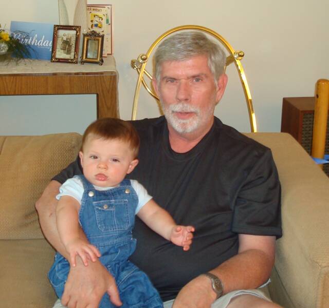 Today is Daddy's 31st birthday and Pop-E's 65th. Here I am with Pop-E and then I am showing him how I crawl.