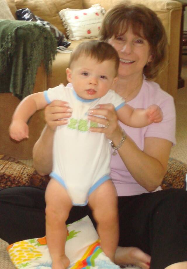 Grandma and Pop-E played with me on the same blanket that Daddy use to play on. Wait until Jake see that it is a Mickey Mouse blanket - probably be in Woburn soon. Then Grandma, feed me, changed my diaper and put me in the crib they have for all visiting Grandsons.