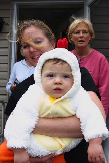 We celebrated Halloween at Aunt Janice and Uncle Jimmy's house with our cousins (mommy's side of the family). The Bro's were MONKEYS and I was a CHICKEN! "Chicken" - what were Mommy and Daddy thinking. DO I look like someone that should be dressed as a Chicken - What do you think MeMe was thinking!