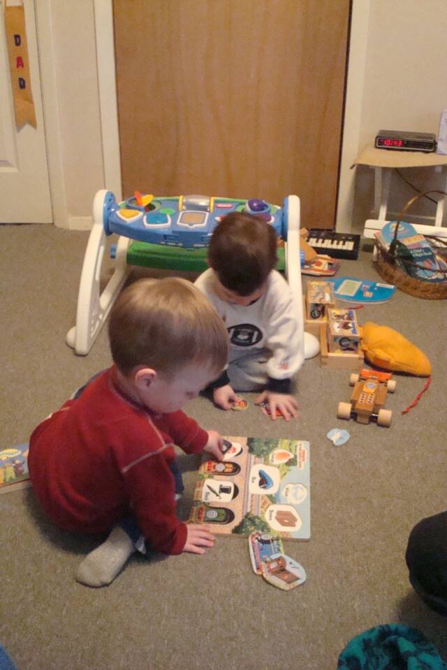 Anyway, Christopher and Daniel were being watched by MeMe and PopPop at our house while I (you guessed it) was shipped to MeMa and Pop-E’s.